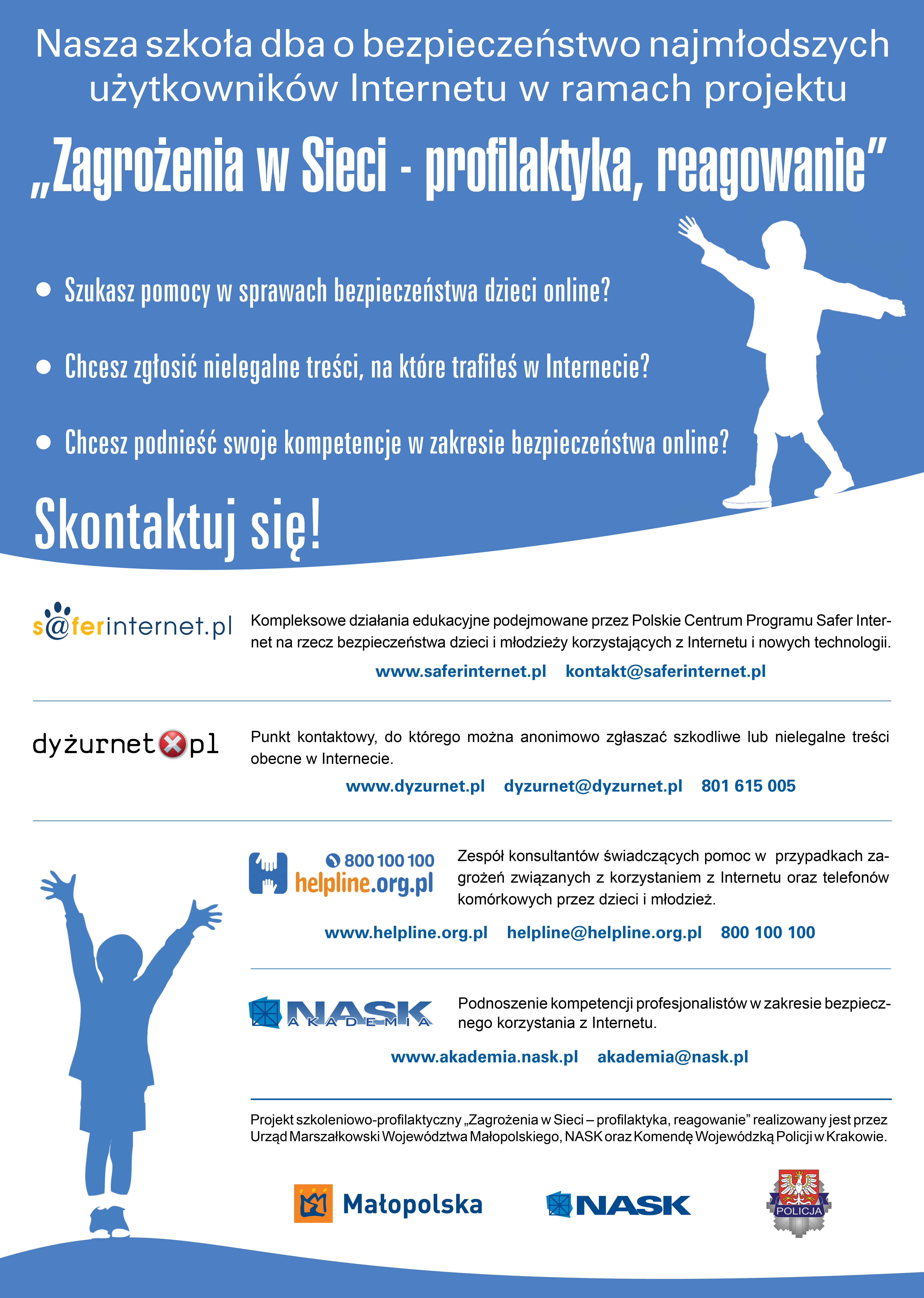 Więcej o projekcie: https://www.profilaktykawmalopolsce.pl/zagrozenia-w-sieci-o-programie
