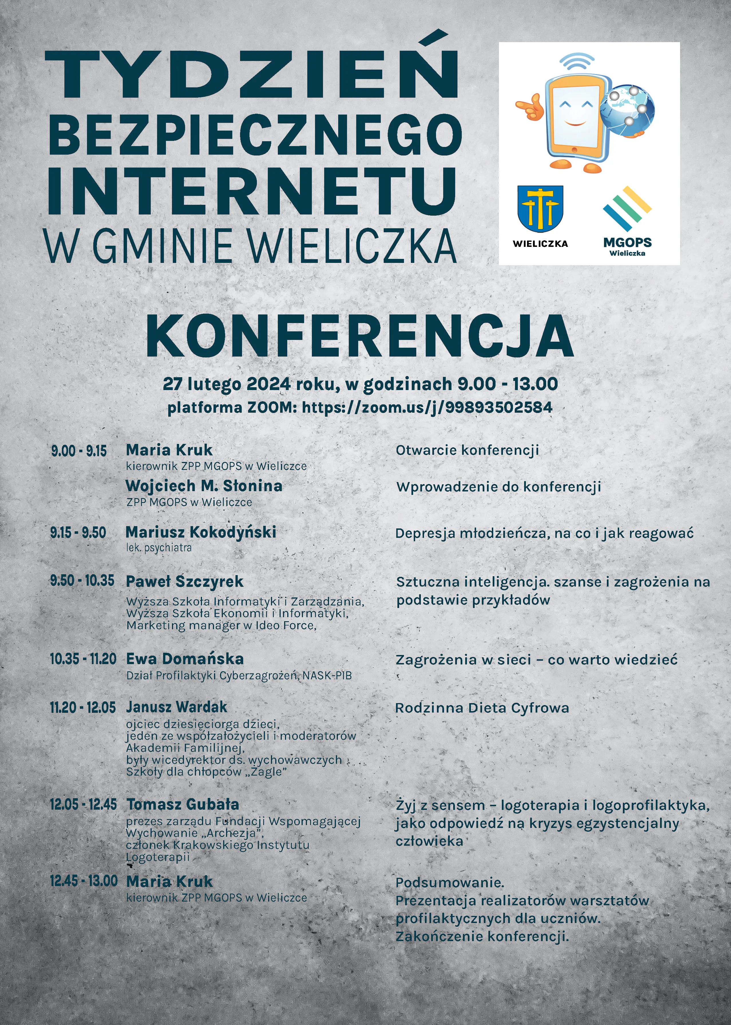Program konferencji Tydzień Bezpiecznego Internetu w gminie Wieliczka
